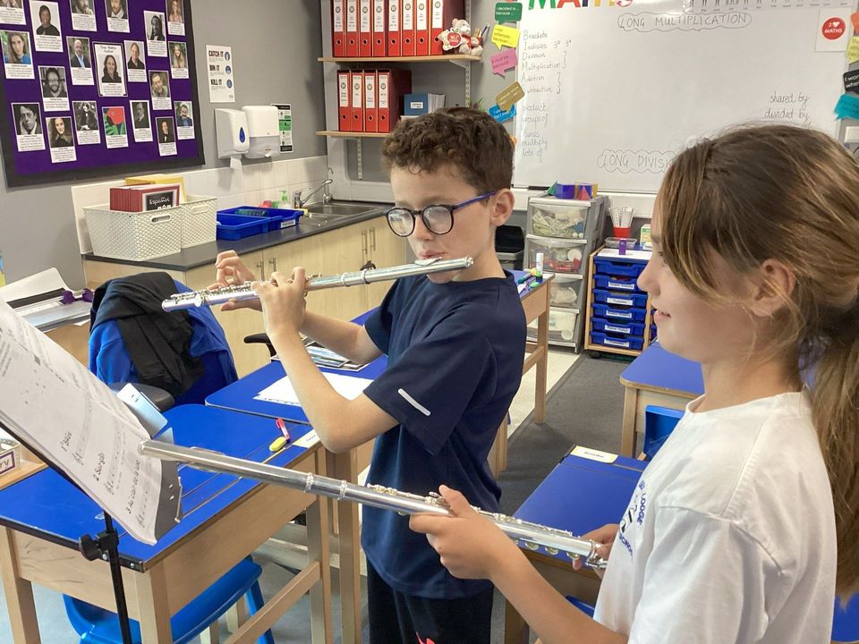 Pupils from Year 5 and 6 have the opportunity to sign up for Flute lessons which are led by our resident music specialist, Mrs Stuart. In the sessions, children develop their musicianship skills through playing the flute and learning musical theory so that they become confident in understanding and performing musical notation. They also have opportunities to use these skills to compose music of their own. Additionally, they can progress towards taking ABRSM examinations should they wish to.