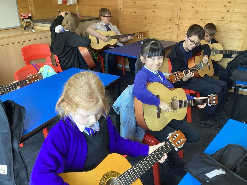Guitar and Keyboard tuition is provided by 'UpBeat Academy'. Children can participate in small group tuition on either instrument and a group of 15 children participate in our after school guitar club.