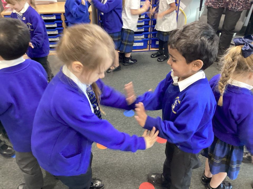 These children in Reception are playing a hand clapping game to develop a steady beat.