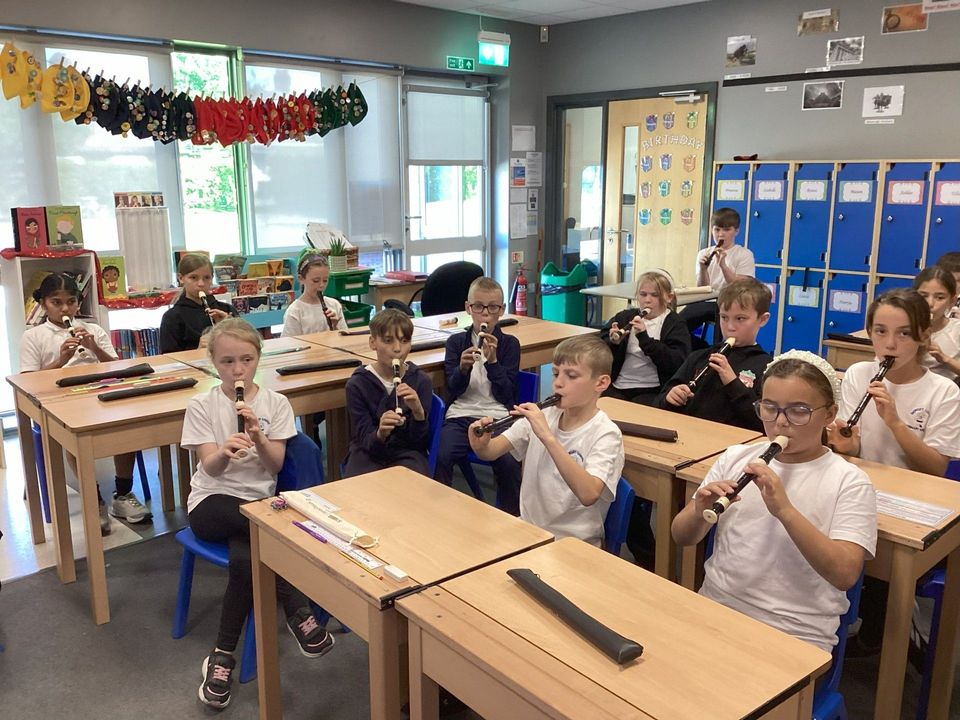 These children in year five and six have been learning the letter names for music notation and learning how to play these on recorder.