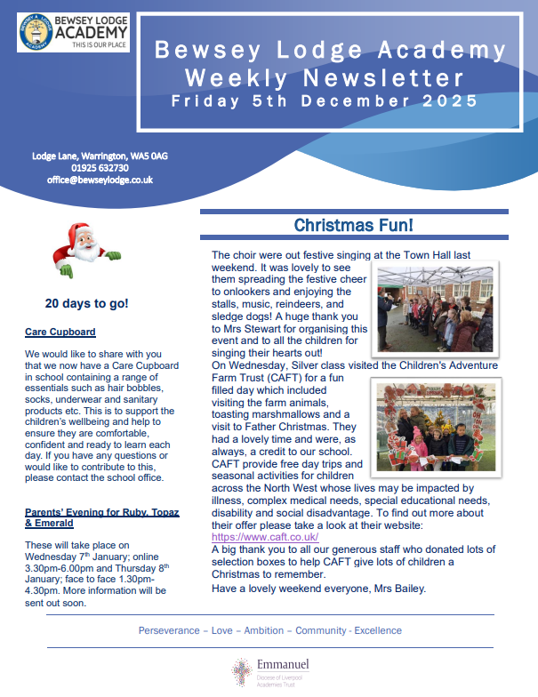 Here you will find the latest newsletter, these are updated on a weekly basis and will keep you up to date with all things Bewsey Lodge.