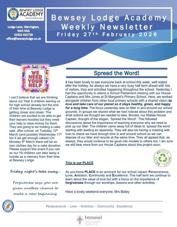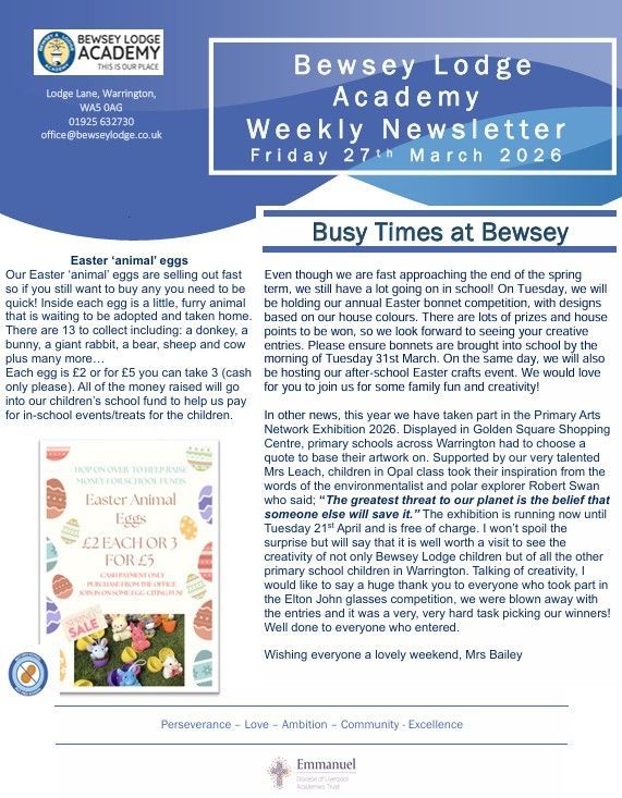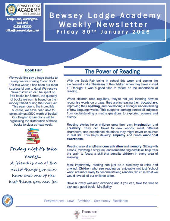 Here you will find the latest newsletter, these are updated on a weekly basis and will keep you up to date with all things Bewsey Lodge.